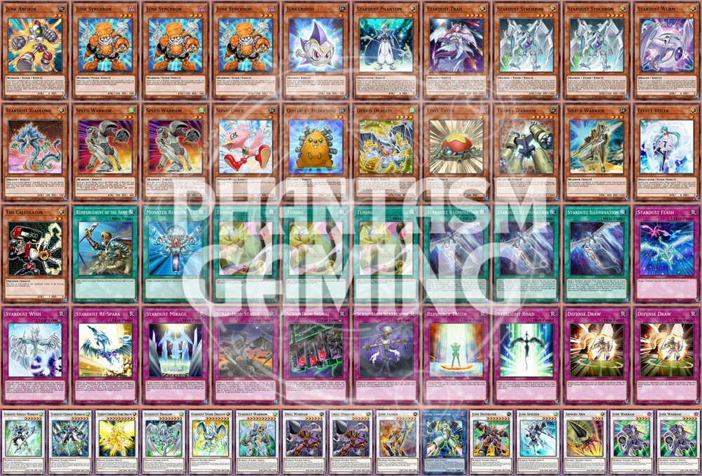 Deck Name: Yusei Fudo Stardust Spark Dragon Signer Junk Speed Deck Yugioh # Main Deck (40) 1 - Junk Anchor 3 - Junk Synchron 1 - Junkuriboh 1 - Stardust Phantom 1 - Stardust Trail 2 - Stardust Synchron 1 - Stardust Wurm 1 - Stardust Xiaolong 2 - Speed Warrior 1 - Sonic Chick 1 - Quillbolt Hedgehog 1 - Debris Dragon 1 - Level Eater 1 - Turret Warrior 1 - Shield Warrior 1 - Effect Veiler 1 - The Calculator 1 - Reinforcement of the Army 1 - Monster Reborn 3 - Tuning 3 - Stardust Illumination 1 - Stardust Flash 1 - Stardust Wish 1 - Stardust Re-Spark 1 - Stardust Mirage 1 - Scrap-Iron Statue 1 - Scrap-Iron Signal 1 - Scrap-Iron Scarecrow 1 - Reinforce Truth 1 - Starlight Road 2 - Defense Draw # Extra Deck (15) 1 - Stardust Assault Warrior 1 - Stardust Charge Warrior 1 - Stardust Chronicle Spark Dragon 1 - Stardust Dragon 1 - Stardust Spark Dragon 1 - Stardust Warrior 2 - Drill Warrior 1 - Junk Archer 1 - Junk Connector 1 - Junk Destroyer 1 - Junk Speeder 1 - Armory Arm 2 - Junk Warrior You will receive all of the following cards listed above. Most cards will will be in near mint condition. In the case of certain older cards we will do our best but some cards may be light or even moderatly played in extreme condtions. Those conditions being the card has not been reprinted in a number of years and con no longer be easily purchased in light or near mint condition. Set, Rarity, and Edition will vary and cannot be special requested. These lists are constructed with least expensive rarities we have available in stock. All cards are play legal copies. Note: If purchasing a Yugioh Deck all Speed duel cards are 100% legal at all levels of play. Store Policies Here at PMG_LLC , we pride ourselves on having the best customer service around. If you have any questions or can't seem to find something that you want please do not hesitate to contact us. We will do our best to respond to all questions within one business day. Hours of Operation: Monday-Friday: 2:30pm - 10:00pm Saturday- 10:00am - 8:00pm Sunday 11:00am - 5:30pm Note: We are closed all national holidays. Info: Thank you for choosing PMG_LLC . We appreciate your business. We ship Monday through Friday to make sure you get your deck as quickly as possible. All orders priority orders can use combined shipping. In order to use the combined shipping your whole purchase needs to be checked out as one order. We ship once we have received your payment and payment has cleared. As always if you have any questions or concerns please feel free to contact us via email. Shipping Information: We ship Monday through Friday, barring national holidays during which the United States Postal Service is closed. If you purchase a card on Friday or Saturday please bear in mind it will not ship until Monday. US Shipping: First Class Mail : Free. Comes with tracking information. Priority Mail with Delivery Confirmation : $9.99 All orders are shipped in appropriate protective material inside bubble mailers. International Shipping: We do not offer international Shipping Return Policy: You must return items sold and fulfilled by PMG_LLC within 30 days of delivery to be eligible for a refund. Returns which are damaged in the mail due to improper return packaging will receive partial refunds. We will process a full refund for all items returned in their original condition. In order for us to process your full refund you must include the full name associated with the order as well as the eBay order number inside the return packaging. We will not process returns which do not include the buyer's name and order number. Requirements: Please return items with the original plastic packaging. Failure to do so may result in a partial refund. Also you must inform us of any returns you may wish to process before sending them back. Any items simply send back to us without prior contact will not be eligible for refunds. Important Notes Remember that to benefit from our domestic combined shipping on priority orders you must to pay in a single payment. If you place two separate priority orders you will be charged the $7.50 shipping fee for both orders. If you place multiple orders for Priority shipping you will be charged the corresponding shipping costs for each order, even if you place the orders on the same day. We do not refund shipping costs as we tend to package orders throughout the day and may not notice that you would otherwise have qualified for combined shipping. We want to provide you with 5 Star service and earn your Positive Feedback, so if for any reason you are not happy with your transaction, contact us before leaving feedback. Business Day - Our business day runs from Monday to Friday from 9am to 4pm, excluding US national holidays. Any orders placed or payments cleared less than 4 hours before the close of business will be considered orders from the following business day.