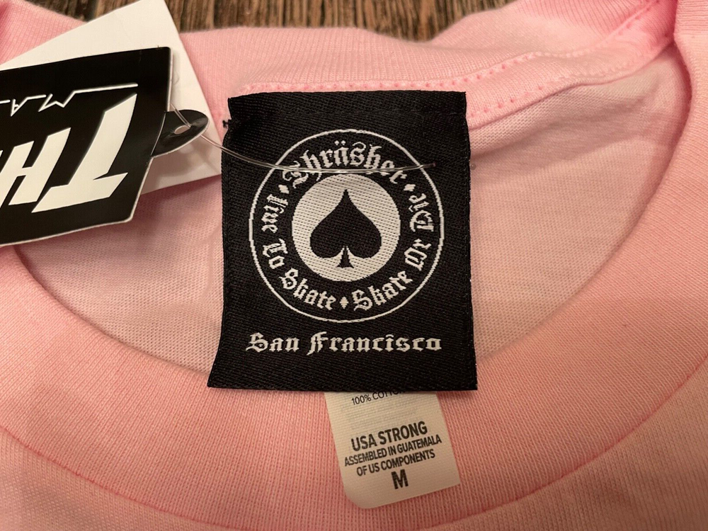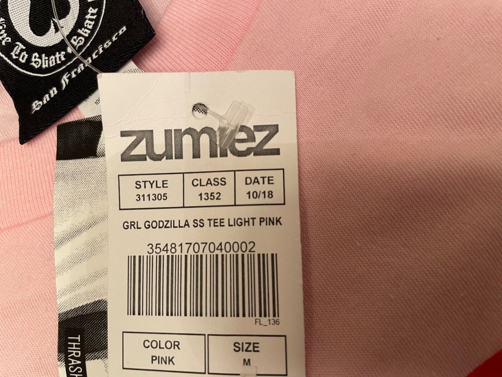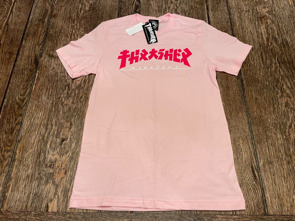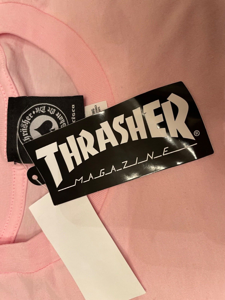 Embrace the skater punk vibe with the THRASHER women's pink Grl Godzilla T-shirt, a perfect blend of style and comfort for those who love to stand out. Crafted from 100% cotton, this short-sleeved tee ensures breathability and ease of wear, whether you're hitting the skate park or just chilling with friends. Available in a regular fit size medium, this T-shirt features the iconic Thrasher brand, known for its quality and durability. Its striking pink hue paired with the classic Godzilla graphic makes it a bold statement piece for any casual wardrobe. Add a touch of rebellion to your attire with this eye-catching top. New With Tags. Top of shoulder to bottom of shirt is 28.5" Pit to pit is 18"