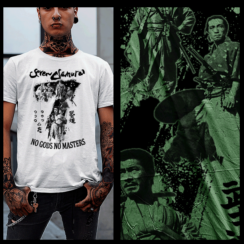 seven samurai t-shirt bushido code Japanese ronin swordsman retro movie tee