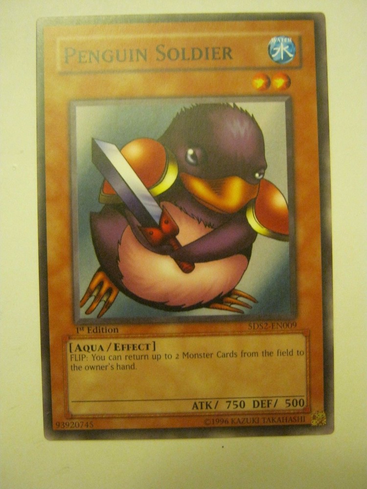 (x1) Penguin Soldier 5DS2-EN009 Trap Card Yu-Gi-Oh Excellent condition, no marks or flaws, actual item showed Visit My Ebay Store Brian's Variety for more items like this Store Volume Discounts from shipping (unless otherwise stated), 2-5 items, 5%... 6 or more items, 10%. (To get this you must let me invoice you before paying.) BUY MORE AND SAVE ON SHIPPING, PLUS DISCOUNTS!!! Interested in more items like this? Check out my "Trading Card Room" in My Ebay Store: "Brian's Variety" Your Cards Shipping Notes, Please Read PLEASE NOTE: Any shipping charges posted are for domestic rates (US), Items are shipped USPS first class so you get a tracking number. If international, please check shipping charges, or let me invoice you before payment Early in 2023 The USPS raised their fees. I weigh each item to try to give you the cheapest shipping costs possible. This applies to all Items I sell, from baseball cards to Beanie Babies to anything else. I charge the least amount I possibly can for shipping (also, we don't get shipping supplies (bubblewrap, padded envelopes, tape etc) for free) (.00) 12/11/16 389---6/26/21 1/27/23
