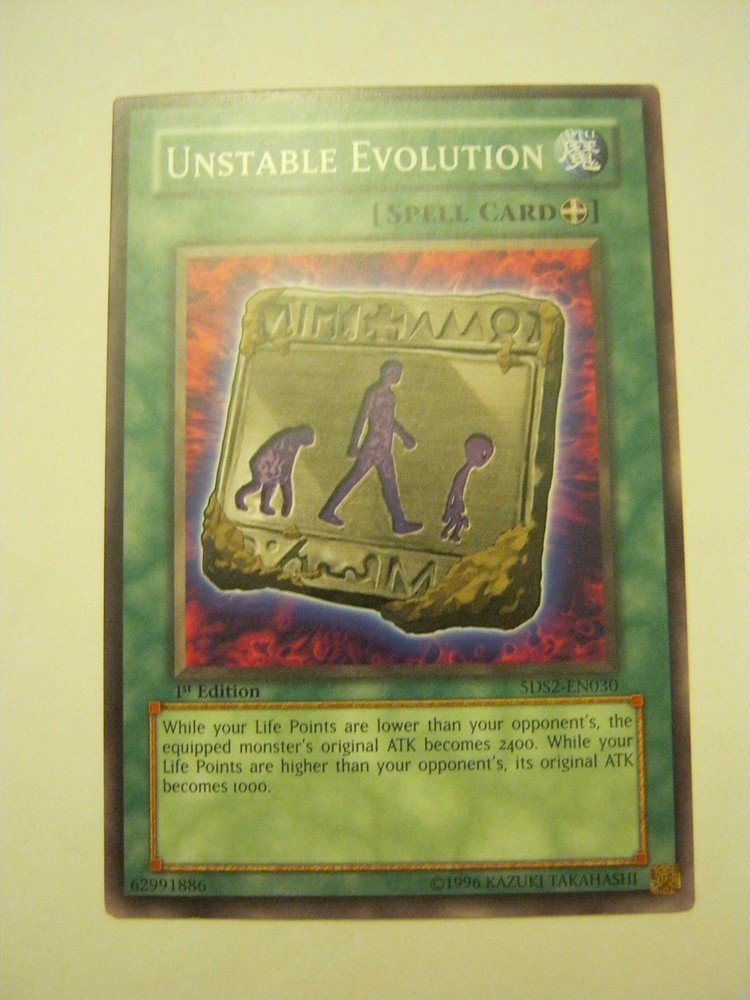 (x1) Unstable Evolution 5DS2-EN030 1st Edition Spell Card Yu-Gi-Oh Very Good condition, actual item shown Visit My Ebay Store Brian's Variety for more items like this Yes, I Do Combined Shipping Store Volume Discounts (unless otherwise stated), 2-5, 5%... 6 or more items, 10%. (To get this you must let me invoice you before paying.) BUY MORE AND SAVE ON SHIPPING, PLUS DISCOUNTS!!! Interested in more items like this? Check out my "Trading Card Room" in My Ebay Store: "Brian's Variety" Your Cards Shipping Notes, Please Read PLEASE NOTE: Any shipping charges posted are for domestic rates (US), Items are shipped USPS first class so you get a tracking number. If international, please check shipping charges, or let me invoice you before payment Early in 2022 The USPS raised their fees. I weigh each item to try to give you the cheapest shipping costs possible. PLEASE keep this in mind before giving a bad review on shipping and handling. I DO NOT MAKE A PROFIT ON SHIPPING! This applies to all Items I sell, from baseball cards to Beanie Babies to anything else. I charge the least amount I possibly can for shipping (also, we don't get shipping supplies (bubblewrap, padded envelopes, tape etc) for free) (.00) 12/9/16 221---6/18/21 10/11/22