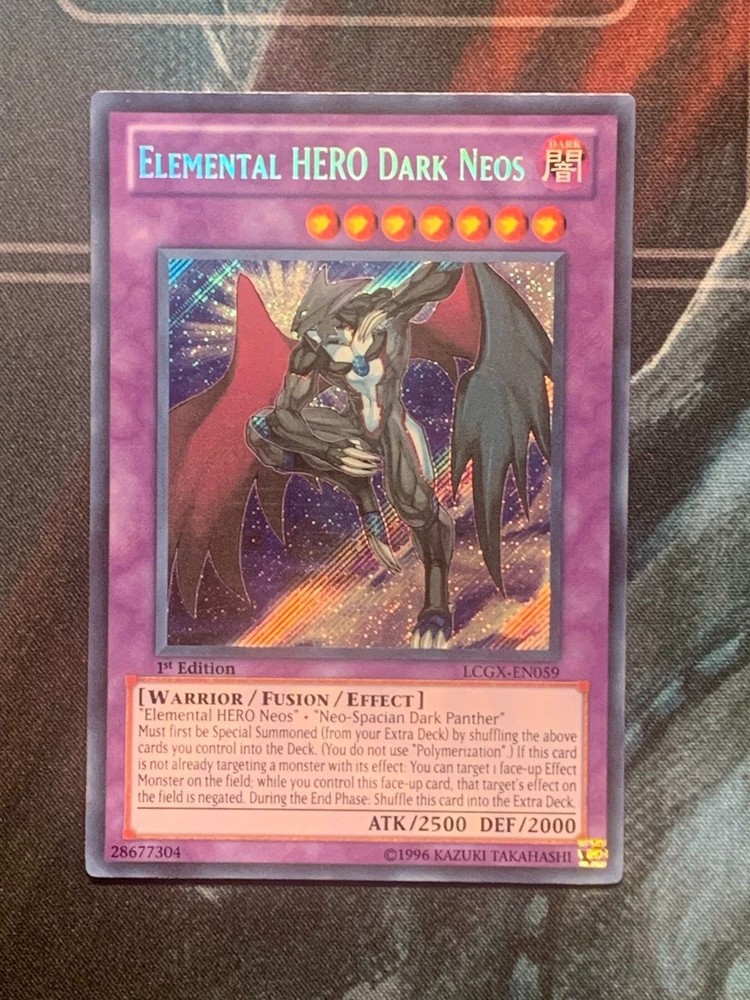 yugioh card secret rare 1st ed elemental hero dark neos LCGX-EN059 NM YOU WILL RECEIVE THE CARD IN THE PICS. PLS SEE PICS FOR CARD CONDITION. I TOOK LOT OF PICS TO DISPAY ANY DEFECTS THE CARD MAY HAVE. SAME DAY SHIPPING ONCE PAYMENT RECEIVED IF YOU NEED MORE PICS OR HAVE ANY QUESTIONS DONT HESITATE TO ASK OR BUT IN AN OFFER THANKS FOR STOPING BY YOU LITTLE RIPPER
