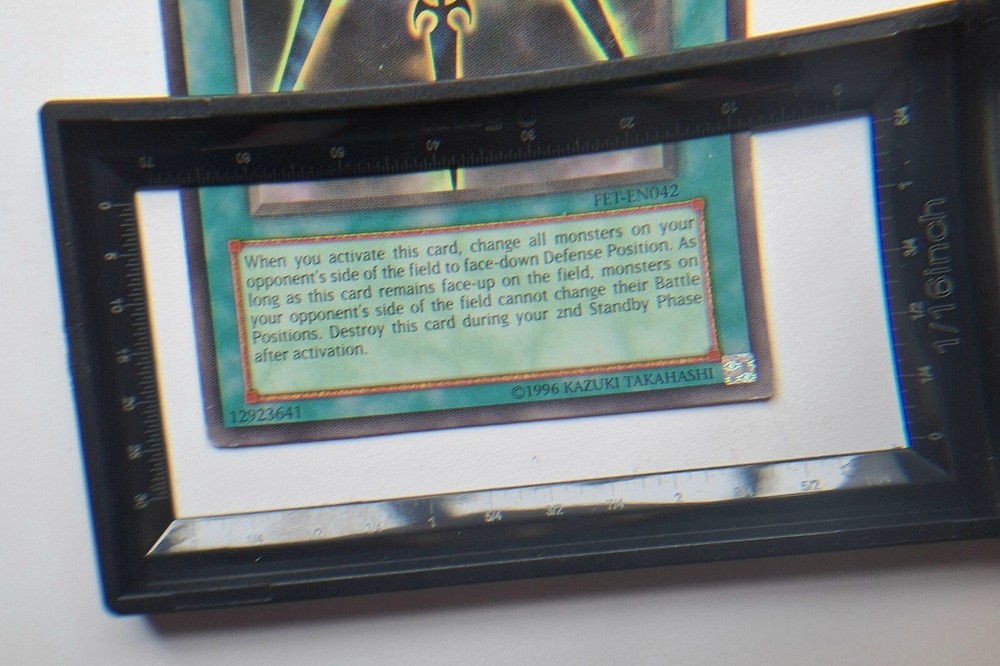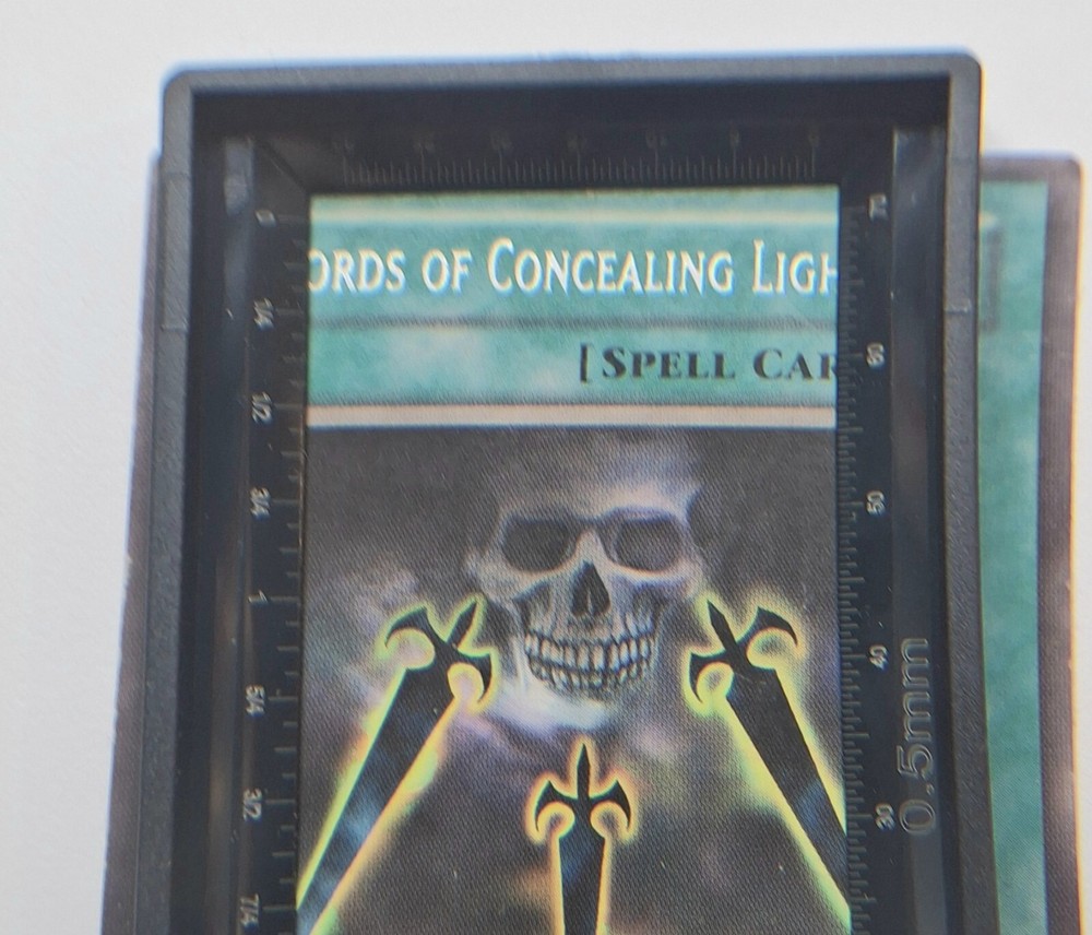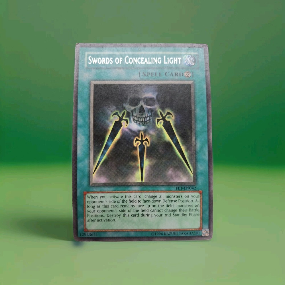 This Yu-Gi-Oh! TCG card, Swords of Concealing Light, is a rare find for collectors and players alike. With a card features the iconic character skull and 3 swords and is made of sturdy card stock material. The card is in English language and has a Japanese card size. Manufactured by Konami in the United States, this card is perfect for players aged 6 and above. It belongs to the Collectible Card Games category and is an individual card that will surely be a valuable addition to any collection. Don't miss out on the chance to own this coveted card.